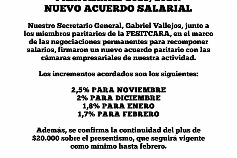 PARITARIAS 2025/2026: NUEVO ACUERDO SALARIAL